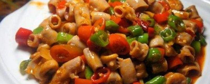 4、倒入大肠,翻炒2-3分钟。