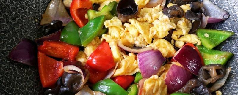 1、干木耳放在凉水里浸泡一小时左右泡发洗净,香菇洗净,用开水烫1分钟左右。捞出凉水过凉沥干水分,切片备用,洋葱切块。香葱切小段,备用,鸡蛋里放少许盐打散。