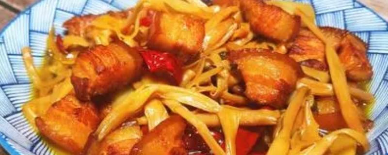 1、准备食材:五花肉500克、干黄花菜50克、干香菇适量、姜片、葱段、桂皮一小块、八角、干辣椒。