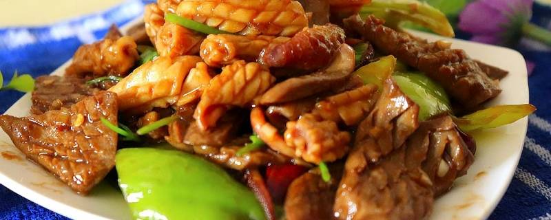 7、腰花倒进锅里翻炒几下。