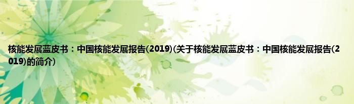 本文关于核能发展蓝皮书:中国核能发展报告(2019)的简介就讲解完毕,希望对大家有所帮助。