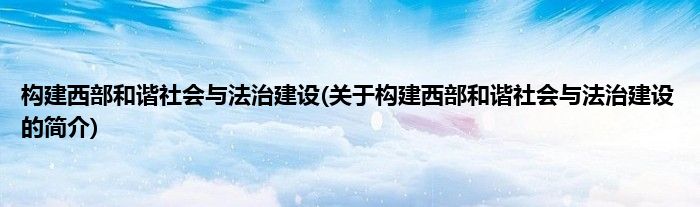 大家好,构建西部和谐社会与法治建设,关于构建西部和谐社会与法治建设的简介很多人还不知道,现在让我们一起来看看吧!