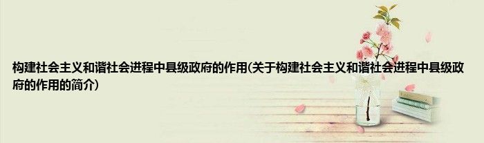 大家好,构建社会主义和谐社会进程中县级政府的作用,关于构建社会主义和谐社会进程中县级政府的作用的简介很多人还不知道,现在让我们一起来看看吧!