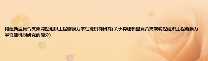 本文关于构建新型复合支架调控组织工程瓣膜力学性能机制研究的简介就讲解完毕,希望对大家有所帮助。