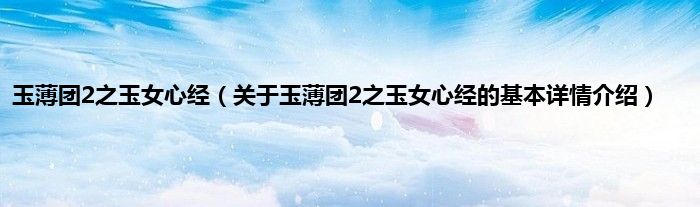 玉薄团2之玉女心经(关于玉薄团2之玉女心经的基本详情介绍)