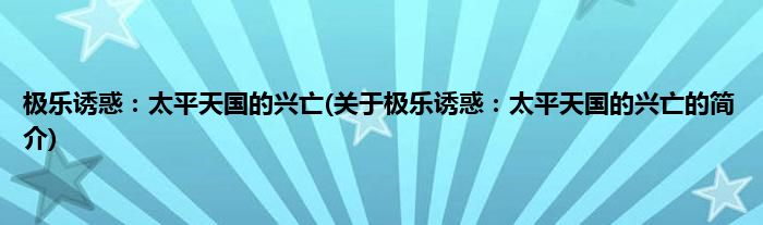 本文关于极乐诱惑:太平天国的兴亡的简介就讲解完毕,希望对大家有所帮助。