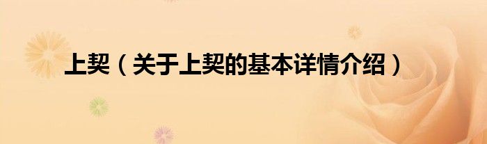 本文关于上契的基本详情介绍就讲解完毕,希望对大家有所帮助。