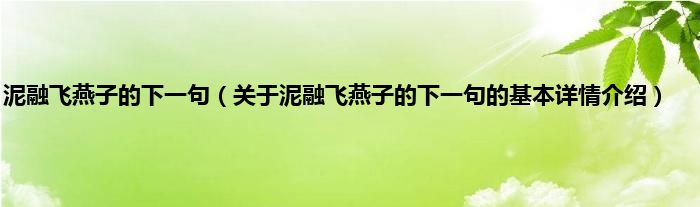 泥融飞燕子的下一句(关于泥融飞燕子的下一句的基本详情介绍)