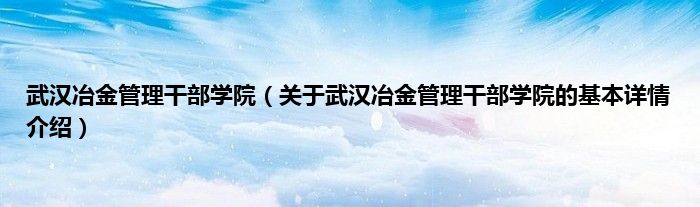 武汉冶金管理干部学院(关于武汉冶金管理干部学院的基本详情介绍)
