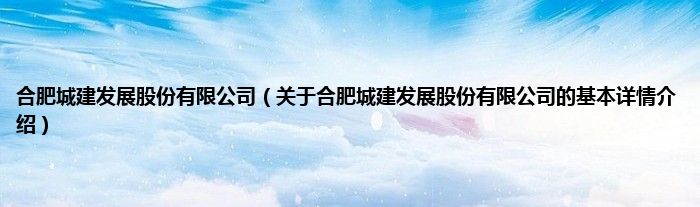 本文关于合肥城建发展股份有限公司的基本详情介绍就讲解完毕,希望对大家有所帮助。