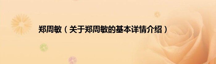 本文关于郑周敏的基本详情介绍就讲解完毕,希望对大家有所帮助。