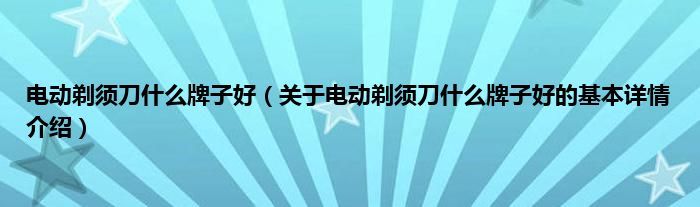 本文关于电动剃须刀什么牌子好的基本详情介绍就讲解完毕,希望对大家有所帮助。