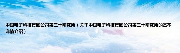 本文关于中国电子科技集团公司第三十研究所的基本详情介绍就讲解完毕,希望对大家有所帮助。