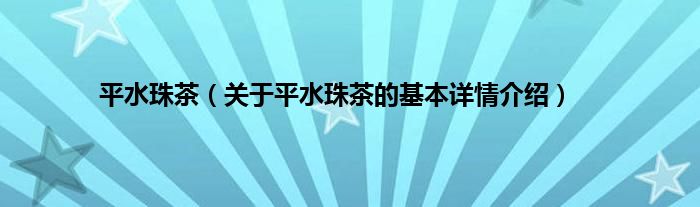 大家好我是小蝌蚪,平水珠茶,关于平水珠茶的基本详情介绍很多人还不知道,那么现在让我们一起来看看吧!