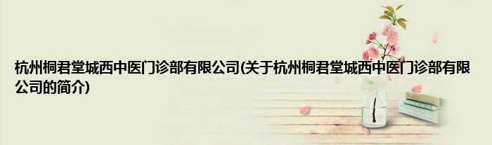 大家好,杭州桐君堂城西中医门诊部有限公司,关于杭州桐君堂城西中医门诊部有限公司的简介很多人还不知道,现在让我们一起来看看吧!