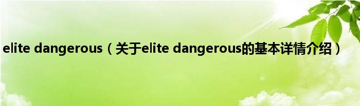 本文关于elite dangerous的基本详情介绍就讲解完毕,希望对大家有所帮助。