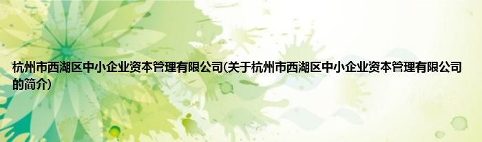 本文关于杭州市西湖区中小企业资本管理有限公司的简介就讲解完毕,希望对大家有所帮助。