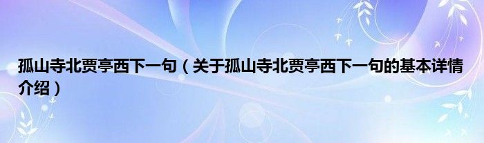 本文关于孤山寺北贾亭西下一句的基本详情介绍就讲解完毕,希望对大家有所帮助。