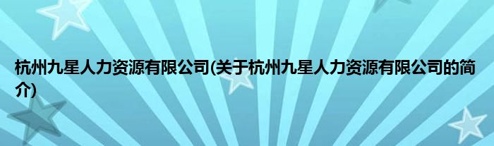 本文关于杭州九星人力资源有限公司的简介就讲解完毕,希望对大家有所帮助。