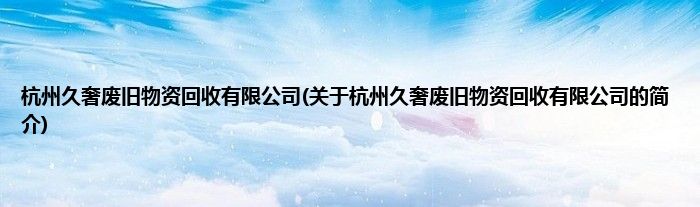 本文关于杭州久奢废旧物资回收有限公司的简介就讲解完毕,希望对大家有所帮助。