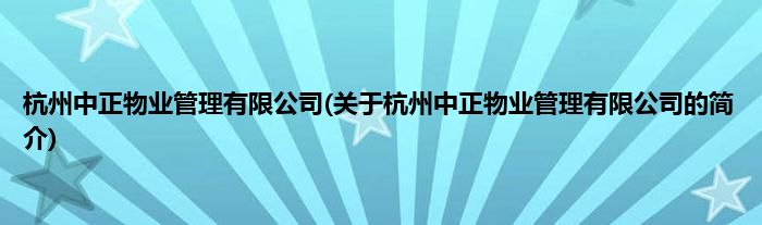 本文关于杭州中正物业管理有限公司的简介就讲解完毕,希望对大家有所帮助。