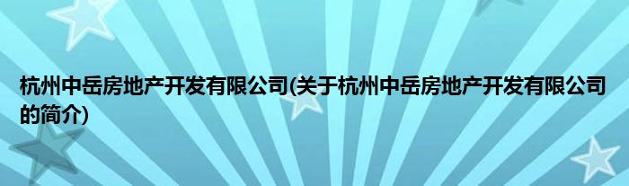 本文关于杭州中岳房地产开发有限公司的简介就讲解完毕,希望对大家有所帮助。