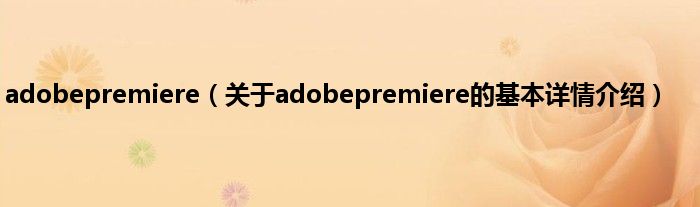 本文关于adobepremiere的基本详情介绍就讲解完毕,希望对大家有所帮助。
