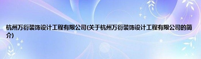 本文关于杭州万衍装饰设计工程有限公司的简介就讲解完毕,希望对大家有所帮助。