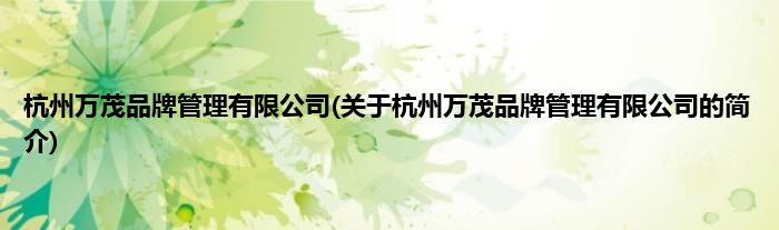 大家好,杭州万茂品牌管理有限公司,关于杭州万茂品牌管理有限公司的简介很多人还不知道,现在让我们一起来看看吧!