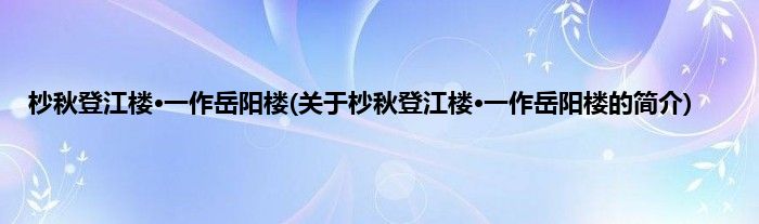 本文关于杪秋登江楼·一作岳阳楼的简介就讲解完毕,希望对大家有所帮助。