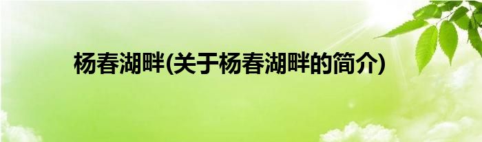 大家好,杨春湖畔,关于杨春湖畔的简介很多人还不知道,现在让我们一起来看看吧!