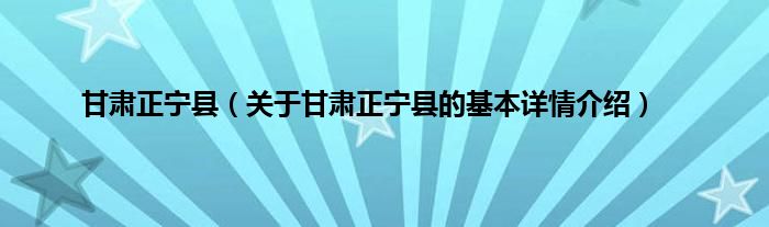 本文关于甘肃正宁县的基本详情介绍就讲解完毕,希望对大家有所帮助。