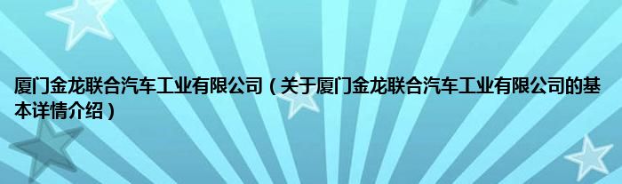本文关于厦门金龙联合汽车工业有限公司的基本详情介绍就讲解完毕,希望对大家有所帮助。