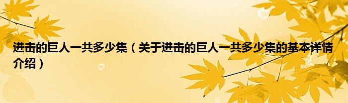 本文关于进击的巨人一共多少集的基本详情介绍就讲解完毕,希望对大家有所帮助。
