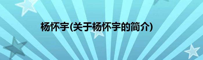 本文关于杨怀宇的简介就讲解完毕,希望对大家有所帮助。