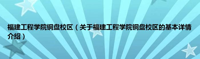 本文关于福建工程学院铜盘校区的基本详情介绍就讲解完毕,希望对大家有所帮助。
