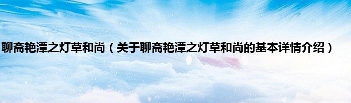 本文关于聊斋艳潭之灯草和尚的基本详情介绍就讲解完毕,希望对大家有所帮助。