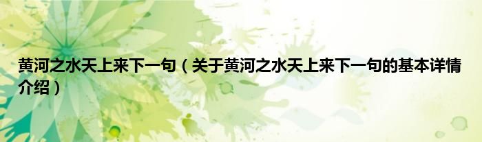 本文关于黄河之水天上来下一句的基本详情介绍就讲解完毕,希望对大家有所帮助。