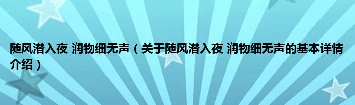 本文关于随风潜入夜 润物细无声的基本详情介绍就讲解完毕,希望对大家有所帮助。