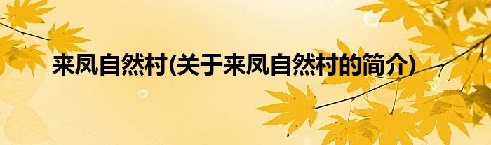大家好,来凤自然村,关于来凤自然村的简介很多人还不知道,现在让我们一起来看看吧!