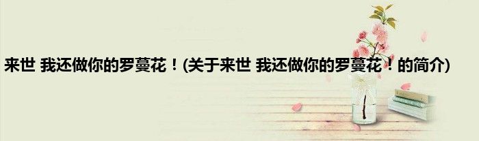 大家好,来世,我还做你的罗蔓花!,关于来世,我还做你的罗蔓花!的简介很多人还不知道,现在让我们一起来看看吧!
