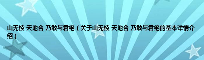 本文关于山无棱 天地合 乃敢与君绝的基本详情介绍就讲解完毕,希望对大家有所帮助。