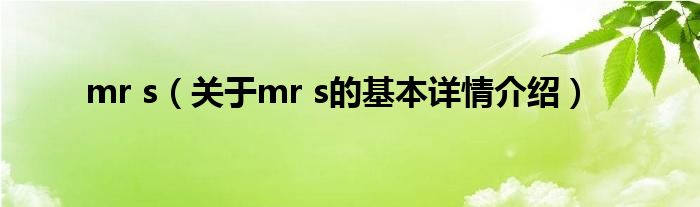 大家好我是小蝌蚪,mr s,关于mr s的基本详情介绍很多人还不知道,那么现在让我们一起来看看吧!