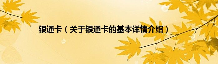 本文关于银通卡的基本详情介绍就讲解完毕,希望对大家有所帮助。