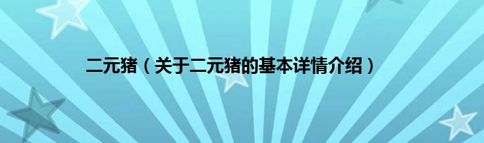 大家好我是小蝌蚪,二元猪,关于二元猪的基本详情介绍很多人还不知道,那么现在让我们一起来看看吧!
