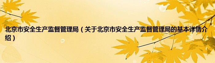 本文关于北京市安全生产监督管理局的基本详情介绍就讲解完毕,希望对大家有所帮助。