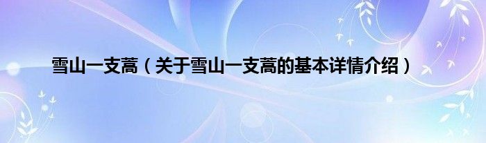 本文关于雪山一支蒿的基本详情介绍就讲解完毕,希望对大家有所帮助。