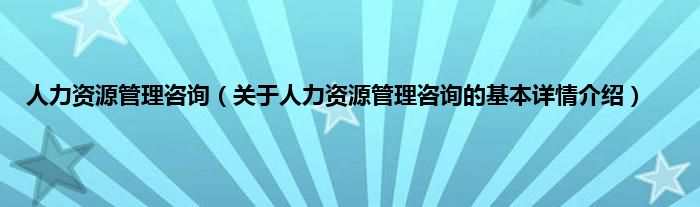 本文关于人力资源管理咨询的基本详情介绍就讲解完毕,希望对大家有所帮助。