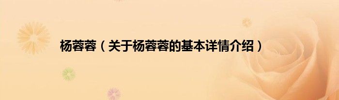 本文关于杨蓉蓉的基本详情介绍就讲解完毕,希望对大家有所帮助。