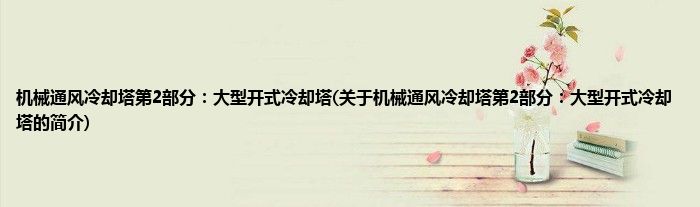 大家好,机械通风冷却塔第2部分:大型开式冷却塔,关于机械通风冷却塔第2部分:大型开式冷却塔的简介很多人还不知道,现在让我们一起来看看吧!